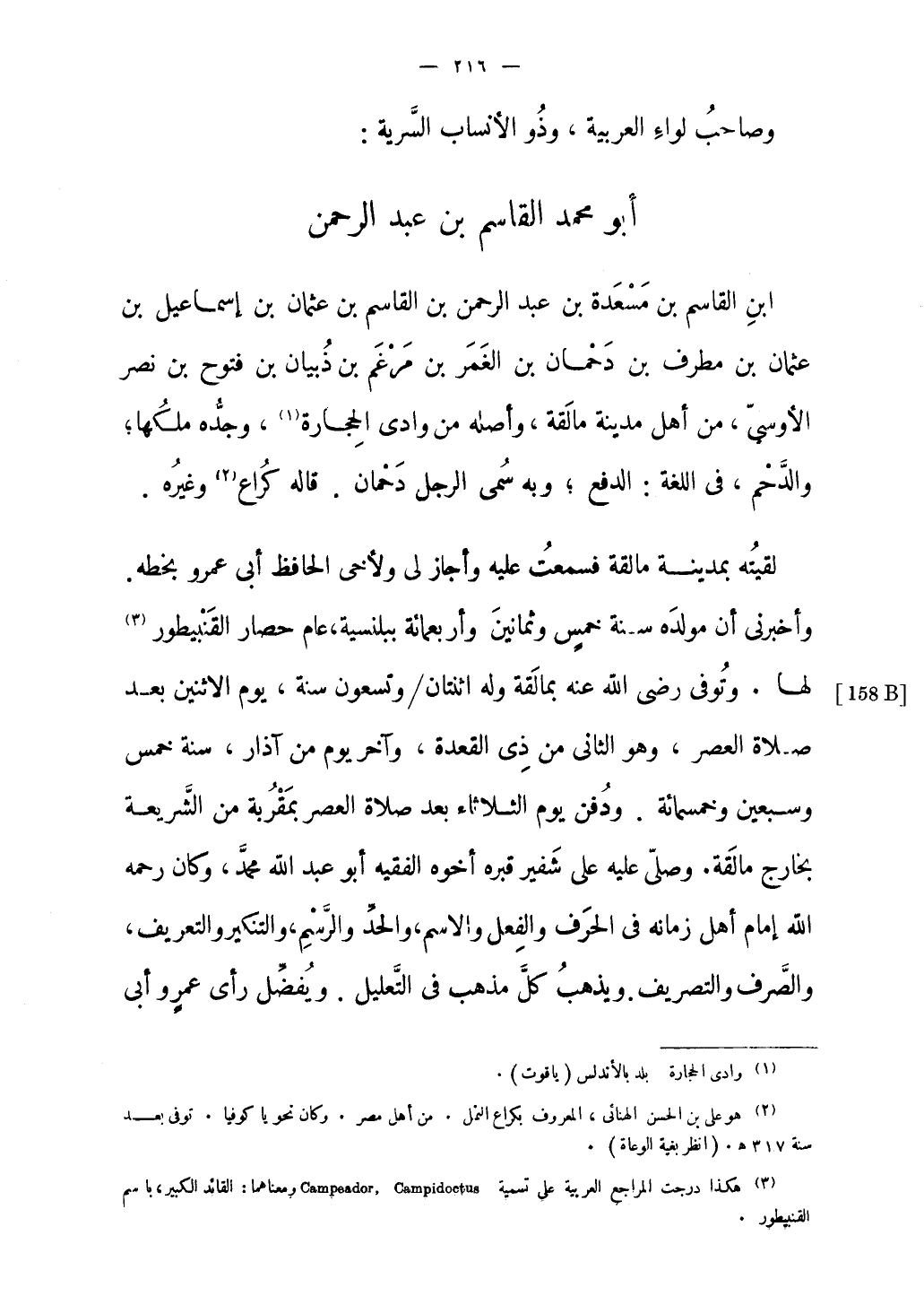 شريح بن محمد الرعيني، وعلى الفقيه القاضي العالم اللغوي النحوي أبي محمد عبد الله ابن الوحيدي. ثم لزم القاضي أبا الفضل عياض بن موسى مدة مديدة، وأعواماً عديدة، وكان فقيه الدرس والنفس، وإن كان حكى عنه ابن خاقان في قلائده أنه كان يحضر مجالس الأنس. فالتوبة بإجماع محاءة للذنوب، مذهبة للمجون والعيوب. وقد استصلح في كبرته للقضاء وقضى، ولم يقض إلا وهو عدل رضى.