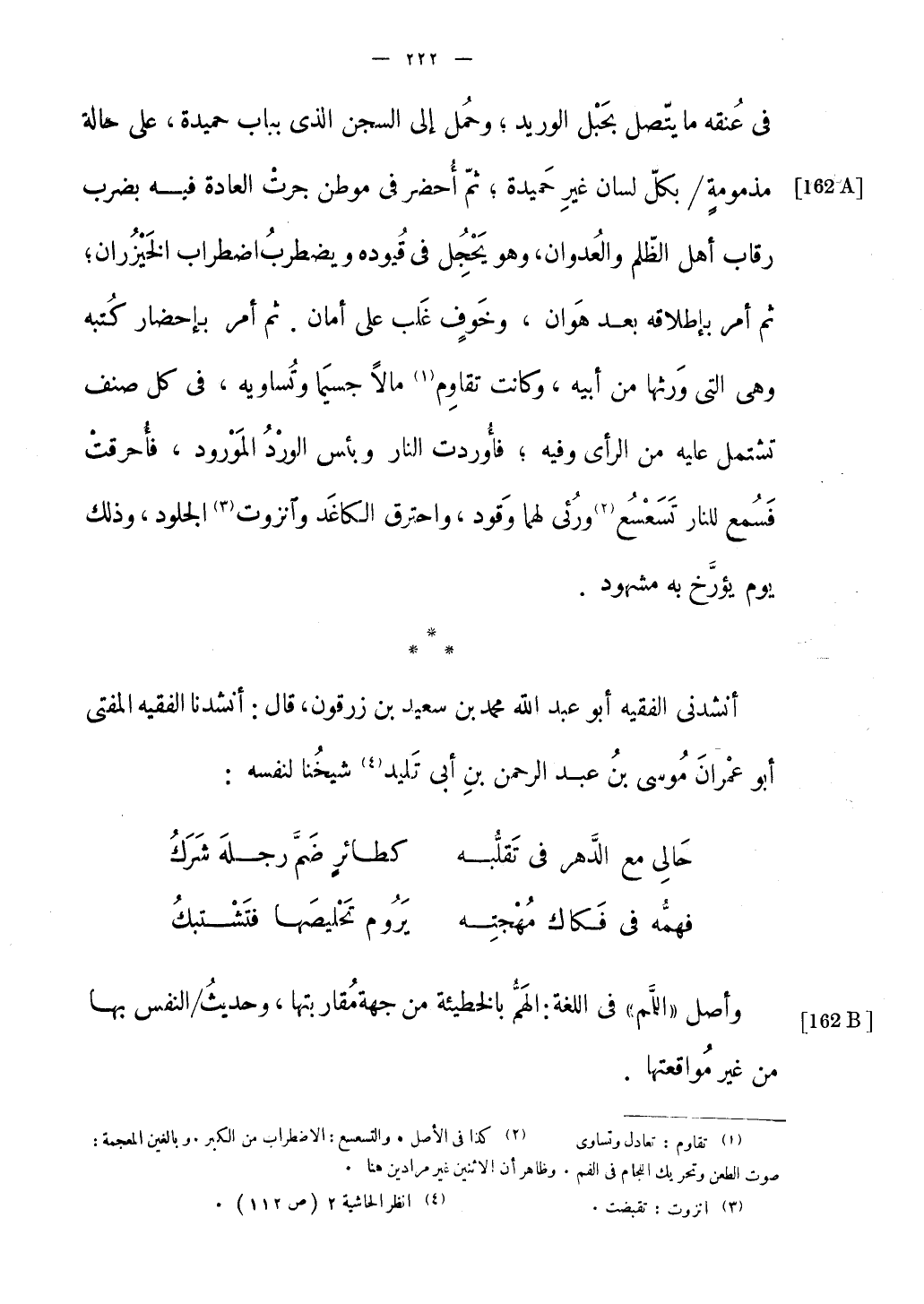 وأنشدنا شيخنا هذا الفقيه أبو إسحاق إبراهيم بن يوسف الحمزي، يعرف بابن قرقول في سفرة صحبته فيها سنة أربع وستين وخمسمائة، وأجاز لي جميع رواياته قال: أنشدنا الأستاذ النحوي أبو محمد بن السيد لنفسه: