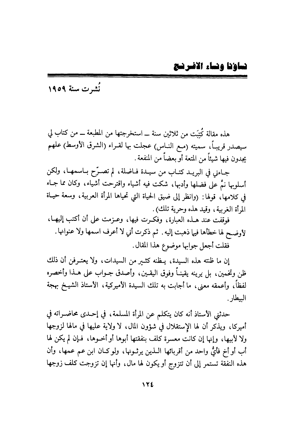 تقول: وهل طلبت أن يهدى إلى بنتي زهرية ثمينة مصنوعة من الفخار الصيني؟ وما الذي استفدته أنا منها؟ وقد وضعت في دار بنتي لا في داري، ولو وُضعت في داري فما فائدتها إلا رجفة القلب من الخوف الدائم عليها أن تصطدم بها الخادم ويرميها الولد فتنكسر؟!