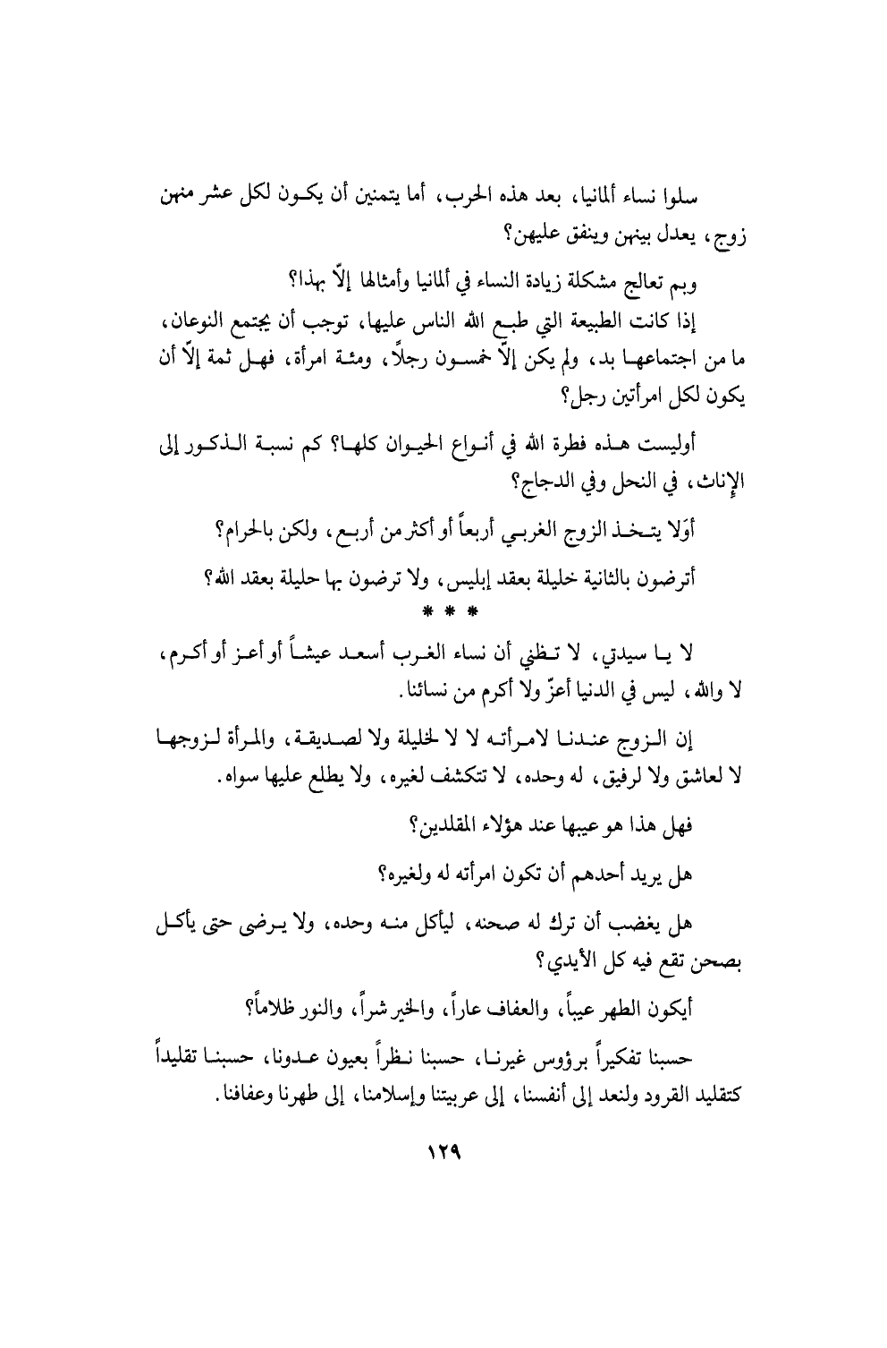 وكان من حديث صاحبنا الشامي الذي سمعته مترجماً إلى لغة القلم ولسان الأدب قوله (والخطاب للفرنسيين): لئن كُتب عليكم أن تذهبوا فإنكم ستعودون عاجلاً ثم لا تذهبون أبداً. على أني سأنتقم لكم، وسأعدّ وحدي العدّة لعودتكم. سأصنع في ليالٍ ما لم تصنعوه أنتم في ربع قرن وتسعة أشهر ... سأريكم قوتي. وليست القوة أن تسوق على عدوّك العسكرَ اللّجب والمدافع والدبابات تضرب بها قلعته، ولكن القوة أن تأتيه باسماً مصافحاً فتحتال عليه حتى يفتح لك قلعته بيده، فإذا أنت قد امتلكتها بلا حرب ولا ضرب. إني سأدسّ لهم دسيسة في عيد الجلاء؛ لا أصبر والله حتى ينتهي العيد. إنها فرصة إن لم أغتنمها لم أكد أجد مثلها. وأنا أعْرَفُ بأهل بلدي، وإن لم يكن دينهم من ديني؛ إنهم لا يؤتَون بالقوة ولا تنفع فيهم. وقد جربتم ورأيتم، فما قتلتم منهم مبغضاً لكم إلاّ وُلد عشرة هم أبغض منه لكم، وما هدمتم داراً من دورهم إلاّ هدمتم معها ركناً من «انتدابكم» عليهم، ولا أشعلتم النار في حيّ لهم إلاّ كانت هذه النار حماسة في قلوبهم عليكم ونار ثورة تتعبكم. ولا يؤخَذون بالشُّبَه تُلقى عليهم في دينهم، ولا بالثقافة التي تحمل الإلحاد والكفر تحت عناوين العلم والفنّ. وما جئتموهم بكتاب هو في زعمكم هدم لدينهم إلاّ أثرتم عليكم مشايخهم وجمعياتهم، فهبّوا يدافعون، فإذا أنتم قد قوّيتم بعملكم إيمانهم في صدورهم. وما يُنالون بالقوانين التي تبطل