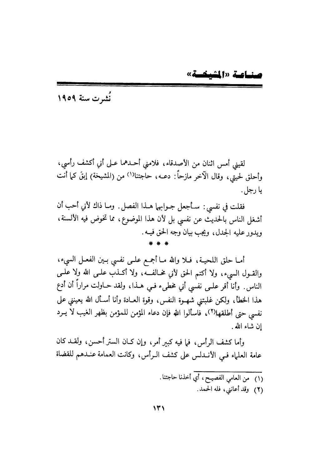 ثم دخل داخلٌ فتنحيت عن مكاني، فلم أسمع شيئاً بعد ذلك. فلما حضرت العرض، ورأيت الذي كان، عرفت من أين جاء البلاء. على أن هذا الرجل وأشباهه لم يصنعوا ما صنعوا حباً بفرنسا ولا إخلاصاً لها. إن قلوبهم أضيق من أن تتسع لإخلاص حتى ولو لفرنسا ... ولكن حباً بأنفسهم وحرصاً على لذتهم. إنهم يكادون يُجَنّون إذ يجدون سوريا لا تزال نساؤها مستترات متحجبات، ولا يفتؤون يسّاءلون أنْ: كيف السبيل إلى هتك الحجاب؟ لماذا لا تكون كفرنسا حيث لا تُستر عورة ولا يُحجب جمال ولا يُمنع من لذة طالبُها؟ لقد احتجّوا بالصحة وأن الحجاب ضعف ومرض، فكذّبهم كون المتحجبات أصح أجساماً وأقوى وأبعد عن المرض، وأن من السافرات مصابات بالزهري والسيَلان. واحتجوا بالتمدن وأن الحجاب رجعية وتوحش، فلم يصدقهم أحد. فجاؤوا هذه المرة فأخذونا على حين غرة وغفلة، وأفادهم أن كان الناس في الفرحة الكبرى، في عيد الجلاء، فقالوا للناس: "إنه يوم فرح، فلتشارك المدارس فيه الأمة. ليُظهر