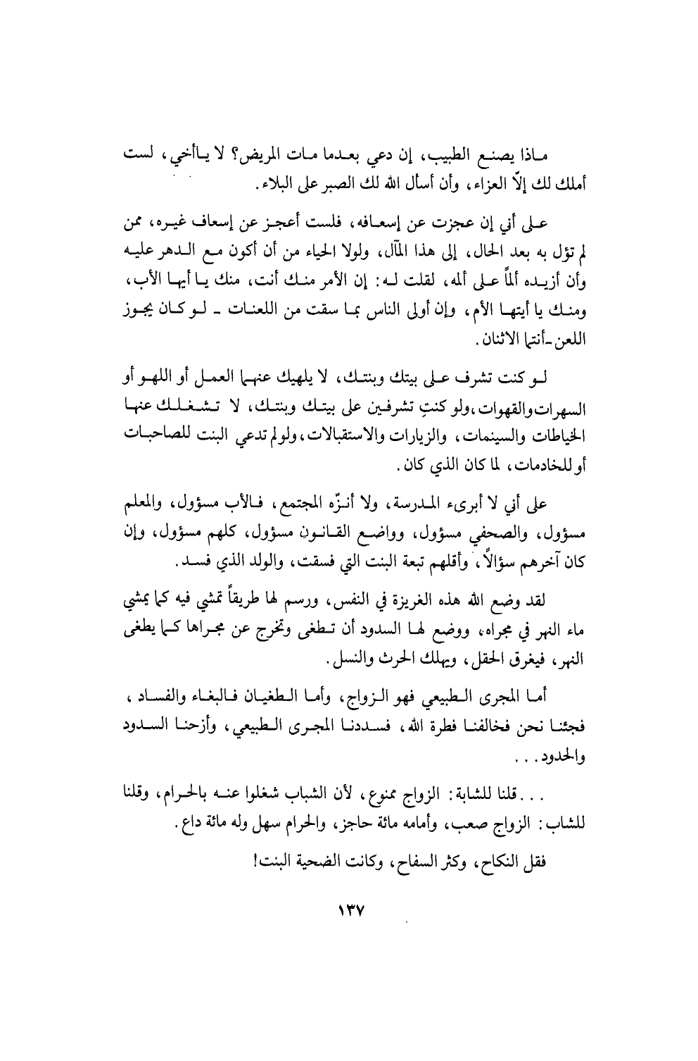 ولو كان سهماً واحداً لاتّقيته، ولكن جارك هذا يحب السهر فهو يفتح الراد على مصراعيه فلا يزال يجلجل ويولول إلى نصف الليل، وذاك يحب البكور فهو يقوم فيفتح الراد على مصراعيه من قبل طلوع الشمس!