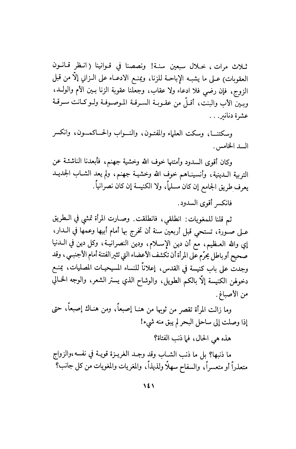 والعاشر: الذي يركب الترام فيضطجع على المقعد اضطجاعاً ويضع رجلاً فوق رجل. ولقد كنت مرة في مصر مع صديق لي من مشايخ الأزهر، معروف بالنكتة الحاضرة والروح الخفيفة، فركبنا التّرام، وكان الذي أمام الشيخ رومياً ضخم الجثة ثقيلاً، قد وضع رجلاً على رجل ومدّها حتى صار يمس بطرف حذائه جبة الشيخ، فنبهه الشيخ بلطف، فقال له: "أنا خرّ (أي حر)، إذا أنت ما بيعجبك أنت بياخذ تاكسي". فما كان من الشيخ إلاّ أن مدّ رجليه الاثنتين فوضعهما في حضنه. فقال: "إيه ده؟ إيه ده؟! "، فقال: أنت خر، أنا خرّين!