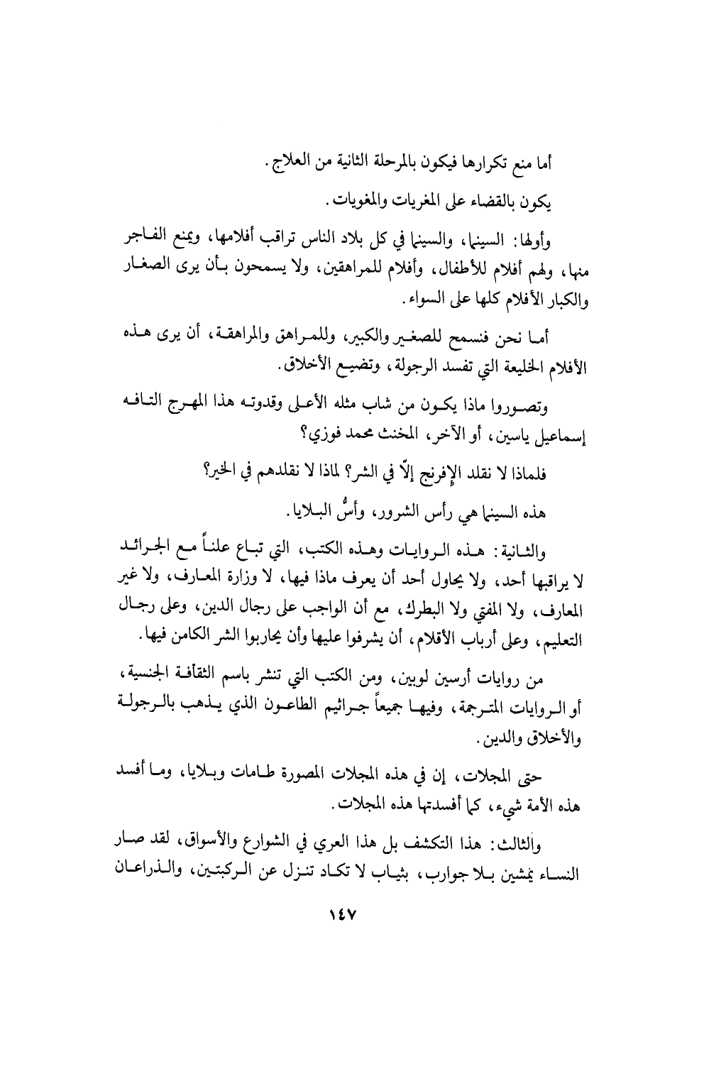 لقد رضينا أن تأخذ هذه الفنادق من أموالنا بلا حق وأغمضنا عيوننا وتركناها تسرقنا، أما أن تأخذ من كرامتنا، وتعدو على لغتنا، وتزدري أزياءنا وعاداتنا، فلا.