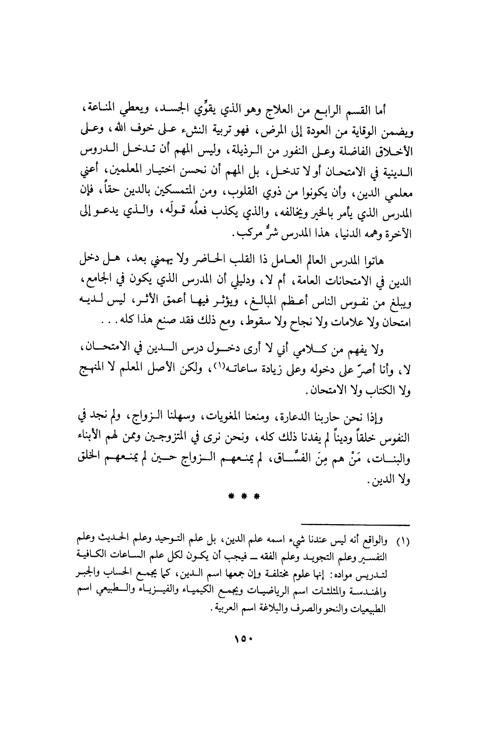 قلت: حسبك تقبيحاً يرحمك الله. إن الذي لقّنه هذه الآراء إنما هو ... أنا! أفلا تراها أرضى للحق ولمصلحة الأمة من آرائك هذه التي جئته بها، والتي جاء بها من قبلك فريق من أعدائنا وخصومنا ففرّقوا كلمتنا وكذبوا على تاريخنا، بفرعونية ابتدعوها في مصر ما أنزل الله بها من سلطان، وفينيقية اخترعوها في الشام، وآشورية سيبتكرونها في العراق، وعفريتية سيأتون بها في ... فيما لست أدري أين؟ كأنما يرضيهم أن ننتسب للشياطين أو للقردة (أجداد دارون وشيعته) ولا ننتسب لأمة محمد صلى الله عليه وسلم فنقرأ تاريخها،