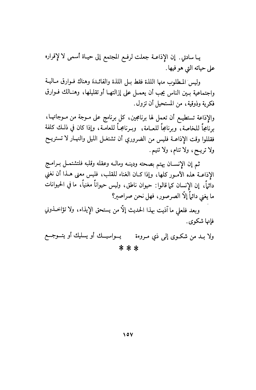 يصرفك عن التفكير في الامتحان. وأن تنام تلك الليلة تسع ساعات أو عشراً إذا استطعت، ولا تخشَ أن تذهب المعلومات من رأسك فإن الذاكرة أمرها عجيب، ولا سيما لمن كان في أوائل الشباب؛ إن ما يُنقَش فيها في الصبا لا يُنسى. وأنا أنسى والله اليوم ماذا تعشّيت أمس ولكني أذكر ما كان قبل أربعين أو خمس وأربعين سنة كأني أراه الآن، وأنت تبصر في الرائي (التلفزيون) فلماً كنت شاهدته من عشر سنين فتذكره، ولو سألتك عنه قبل أن تدخل لما عرفته.