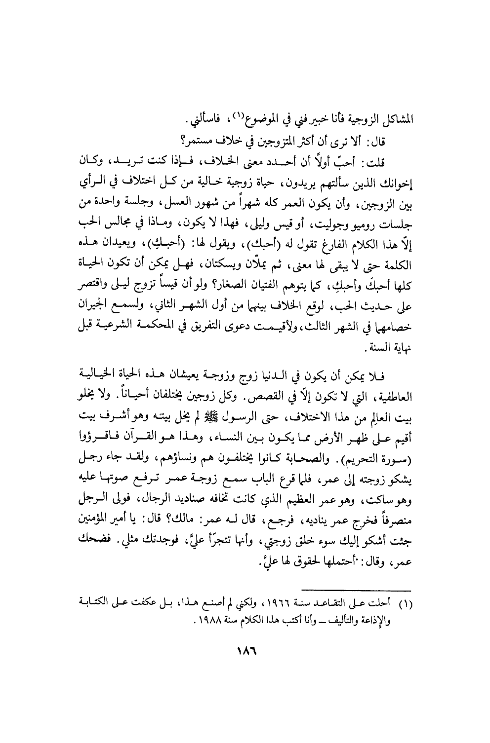 نعم؛ أنتم منعتموه! لم تمنعوه بالقول، لكن بالفعل. تبدأ «الرغبة الجنسية» في سن خمس عشرة، وتكون أشد ما تكون في هذه العشر السنين، إلى سن خمس وعشرين. فهل يستطيع الشاب أن يتزوج في هذه السن؟ وكيف، ونظام التعليم يبقيه على مقاعد الدرس إلى ما بعدها؟ وإن هو ذهب للتخصص في أوربا أو أميركا امتدت به الدراسة إلى قريب من سن الثلاثين، فماذا يصنع في هذه السنين؟