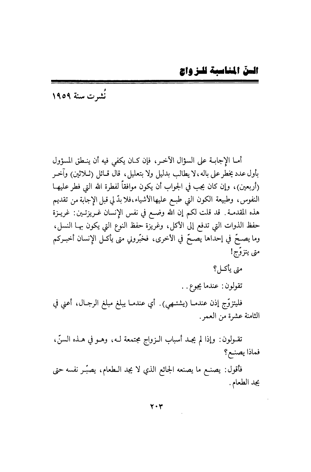 أحل في مقابلته شيئاً، حرّم الربا والميسر (¬1) وأحل البيع والتجارة، وحرّم الزنا وأحلّ الزواج، فإذا منع المجتمعُ الحلالَ المشروعَ عمد الشبان والشابات إلى الحرام الممنوع.