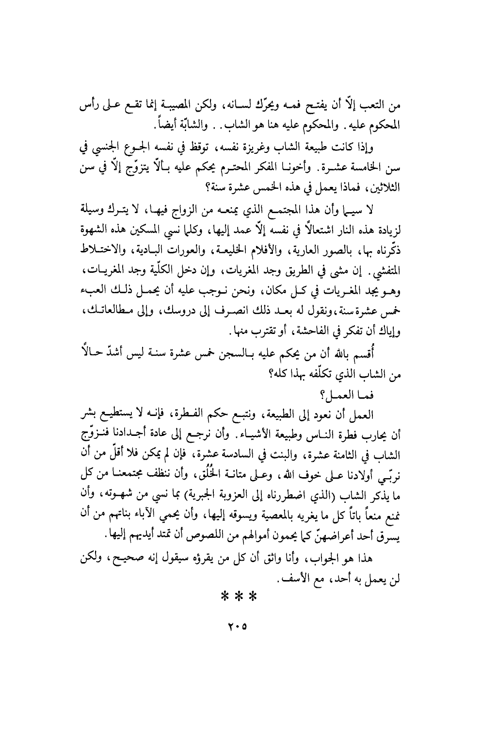 المؤمن، المؤمن وحده هو الذي يصنع هذا، ويصنع أكثر منه، لأنه يعتقد أن الله يعطيه بدلاً من هذا القرش أضعافاً مضاعفة ويعوّضه عما حمل من آلام الجوع لذائذ ليس لها حد (¬1).