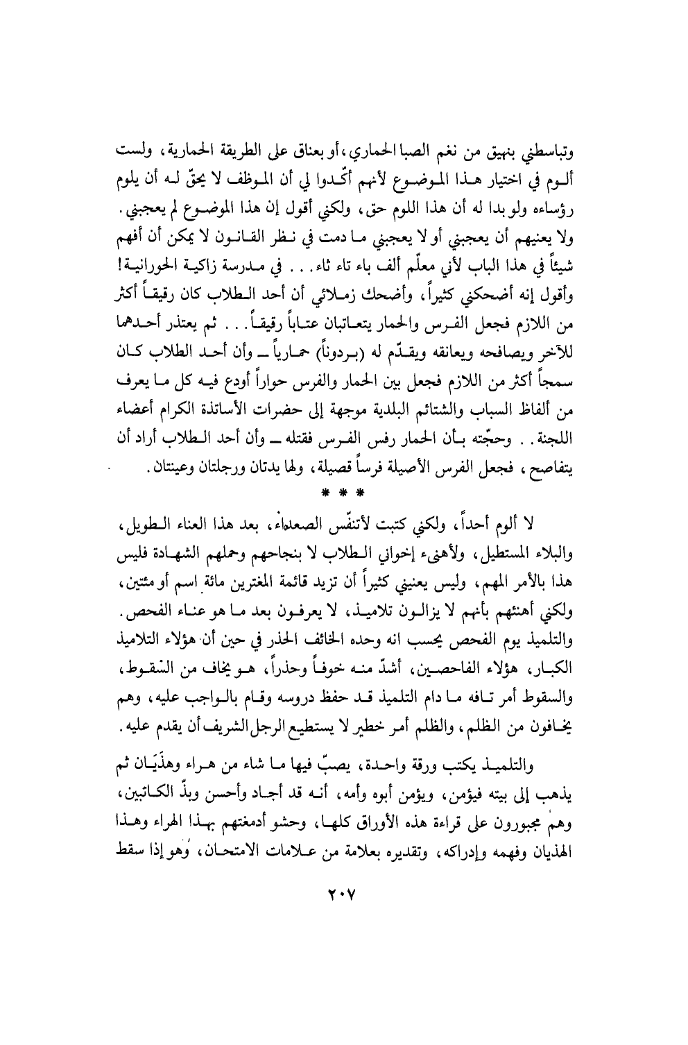 وأنا لا أنتقد القائمين على الإذاعة الآن. لا، وإن أخانا الأمير يحيى الشهابي وإخوانه من أقدم وأقدر المشتغلين بالإذاعة العربية، ولا أنتقد إذاعتنا بالذات، بل هو نقد عام لبرامج الإذاعات العربية كلها. ذلك أنها لا تجد ما تذيعه إلا هذا الغناء، تغني من الصباح إلى الليل بلا استراحة ولا انقطاع. وخبّروني عن هذا الكلام الذي تلحنونه، ما هو؟