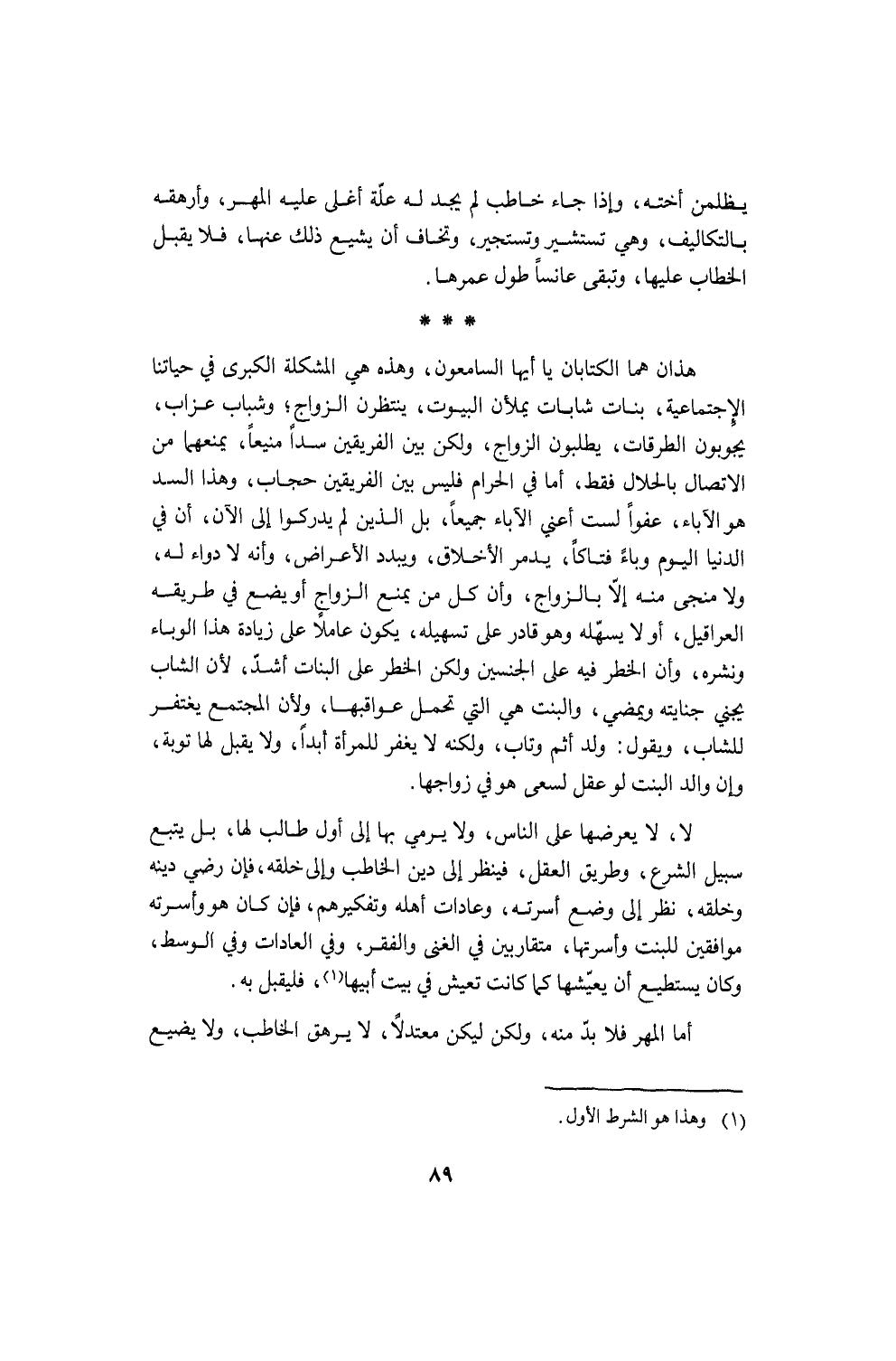 فماذا -يا ناس- ماذا أعمل له؟ أضربه؟ أسبّه؟ أتركه وأمشي؟ أخشى أن يقول الناس: «غير مهذَّب»، فأُضطر إلى محاسنته وملاطفته وأن أدعه يقول لي: "مشتاق" فأقول: "أنا بالأكثر"، وكلانا كاذب!