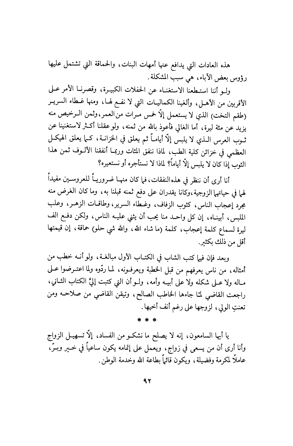 لا يا سيدي! لست أسألك هذه الطريق التي لا أزال أحذّر منها مَن لم يسلكها وأصرف عنها سالكيها. وإن كان السّالكوها هم الكثرة من موظفينا وعلمائنا ومن كل ذي وظيفة أو صاحب صلة بالحكومة، حتى إن الرجل من هؤلاء ليأتي الأمر يعترف أنه مؤذٍ للأمة، منافٍ للفضيلة، مناقضٌ للشرف، فيحتجّ له بأن مصلحته تقتضيه ومعيشته تستلزمه، وأنه رجل (عاوز يعيش ...)، ولا يعيش من لا يساير وينافق ويَذِلّ ويَتزلّف. لا يدري الجاهل أن المعيشة على الصَّعْتَر مع الشرف خير من حياة النعيم والترف من غير فضيلة ولا شرف!