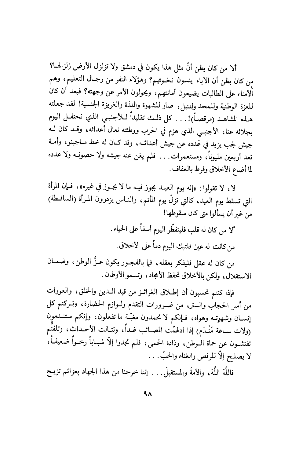 وأخرج منديلاً كأنه ملحفة، ومسح به هذه الكرة المركَّبة بين كتفيه وقال: هيك يا سيدنا؟ ما بتنتظر شوية؟ شو صار؟ حَمَّل الحج؟ سارت الباخرة؟ الإنسان مسيَّر لا مخيَّر، والغائب عذره