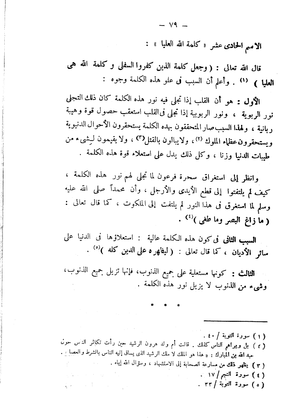 قال الله تعالى : (وَجَعَلَ كَلِمَةَ الَّذِينَ كَفَرُوا السُّفْلَى وَكَلِمَةُ اللَّهِ هِيَ الْعُلْيَا). أعلم أن السبب فى علو هذه الكلمة وجوه :