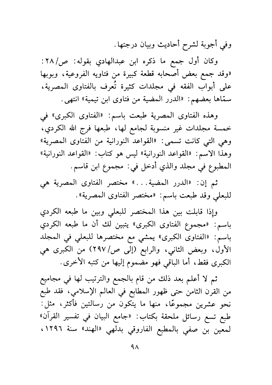 ثم إن: "الدرر المضية ... " مختصر الفتاوى المصرية هي للبعلي وقد طبعت باسم: "مختصر الفتاوى المصرية".