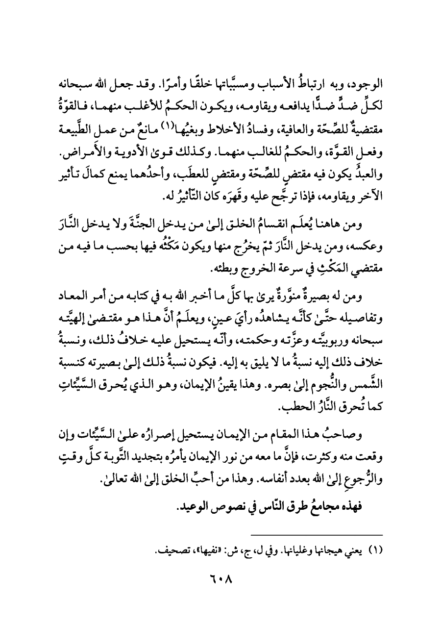 فهذه مجامعُ طرق النّاس في نصوص الوعيد.