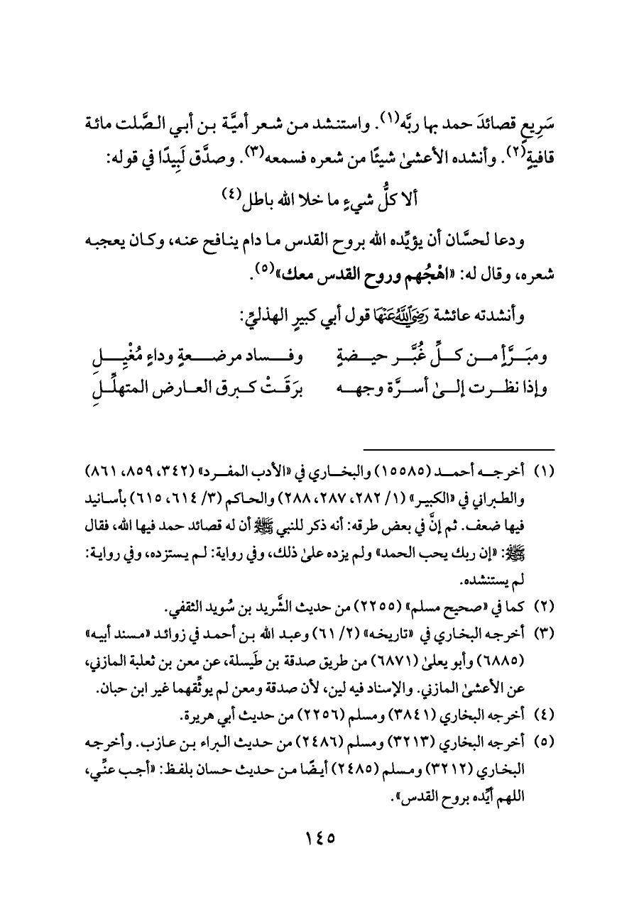 (¬٥) أخرجه البخاري (٣٢١٣) ومسلم (٢٤٨٦) من حديث البراء بن عازب. وأخرجه البخاري (٣٢١٢) ومسلم (٢٤٨٥) أيضًا من حديث حسان بلفظ: «أجب عنِّي، اللهم أيِّده بروح القدس».