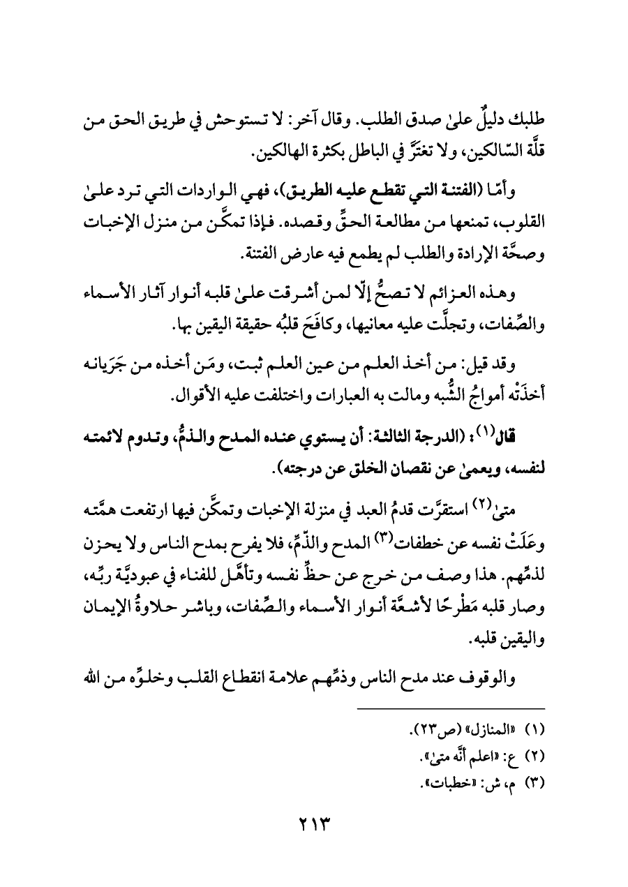 (¬١) «المنازل» (ص ٢٣).