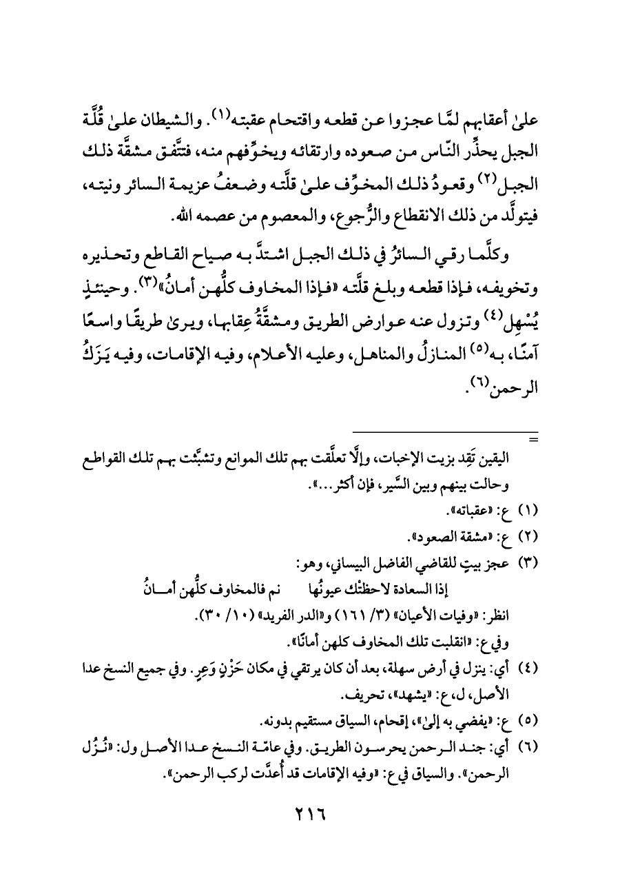 وكلَّما رقي السائرُ في ذلك الجبل اشتدَّ به صياح القاطع وتحذيره وتخويفه، فإذا قطعه وبلغ قلَّته «فإذا المخاوف كلُّهن أمانُ» (¬٣).