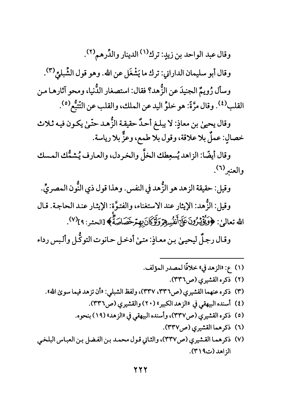 (¬٣) ذكره عنهما القشيري (ص ٣٣٦، ٣٣٧)، ولفظ الشبلي: «أن تزهد فيما سوى الله».