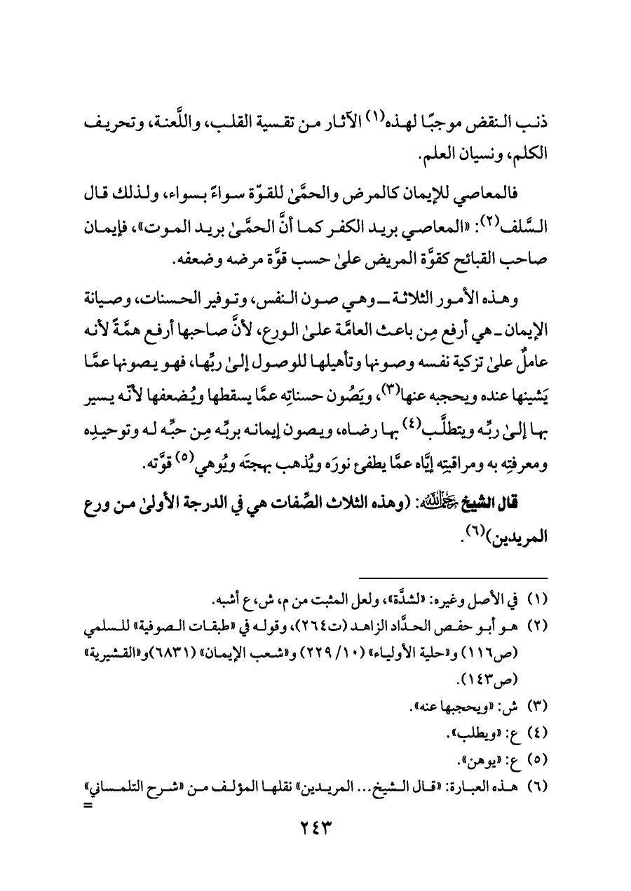 (¬٢) هو أبو حفص الحدَّاد الزاهد (ت ٢٦٤)، وقوله في «طبقات الصوفية» للسلمي (ص ١١٦) و «حلية الأولياء» (١٠/ ٢٢٩) و «شعب الإيمان» (٦٨٣١) و «القشيرية» (ص ١٤٣).