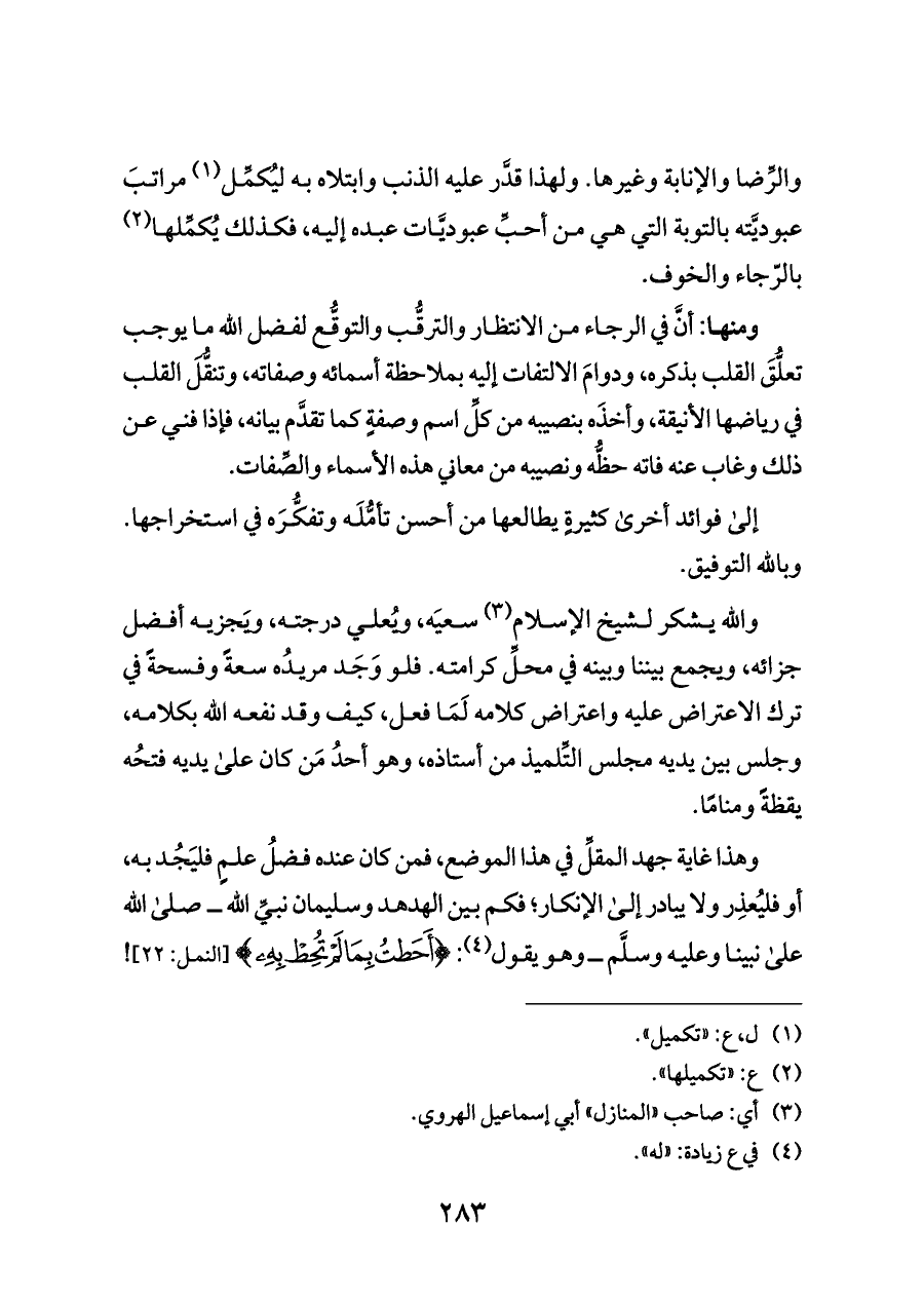 (¬٣) أي: صاحب «المنازل» أبي إسماعيل الهروي.