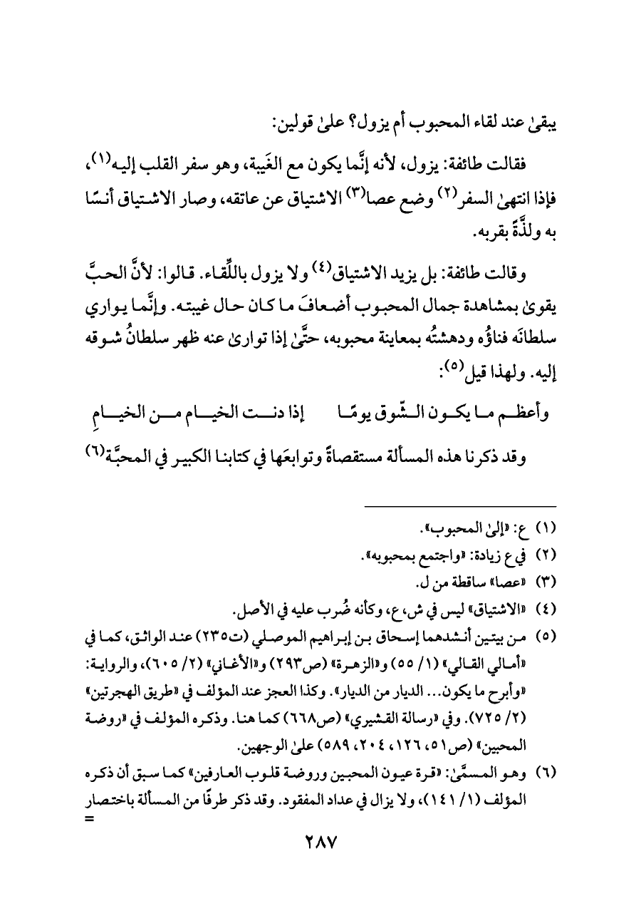 (¬٤) «الاشتياق» ليس في ش، ع، وكأنه ضُرب عليه في الأصل.