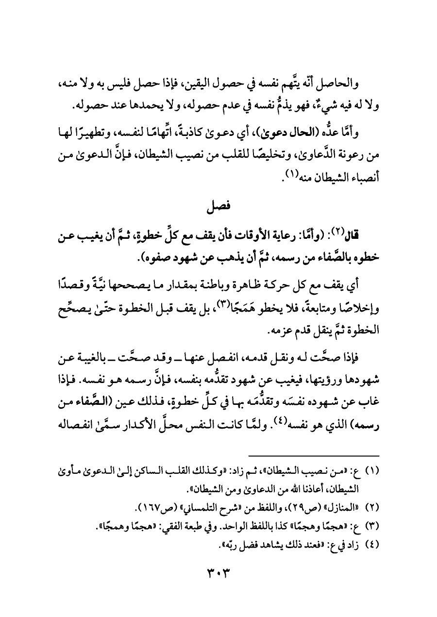(¬٢) «المنازل» (ص ٢٩)، واللفظ من «شرح التلمساني» (ص ١٦٧).