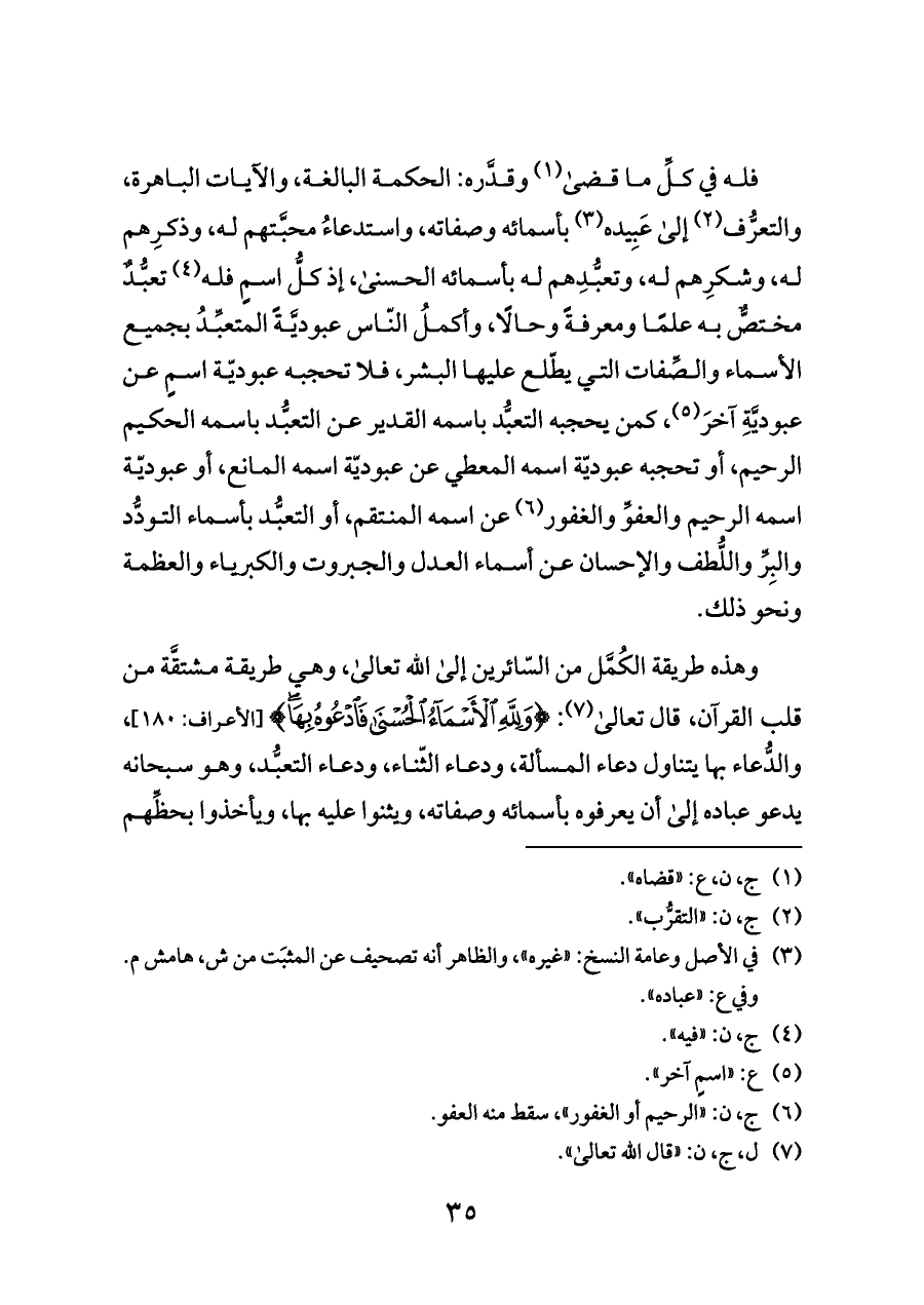 (¬٣) في الأصل وعامة النسخ: «غيره»، والظاهر أنه تصحيف عن المثبَت من ش، هامش م. وفي ع: «عباده».