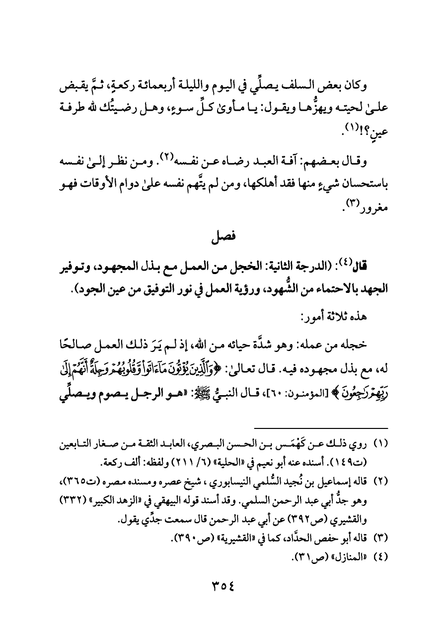 (¬٢) قاله إسماعيل بن نُجيد السُّلمي النيسابوري، شيخ عصره ومسنده مصره (ت ٣٦٥)، وهو جدُّ أبي عبد الرحمن السلمي. وقد أسند قوله البيهقي في «الزهد الكبير» (٣٣٢) والقشيري (ص ٣٩٢) عن أبي عبد الرحمن قال سمعت جدِّي يقول.