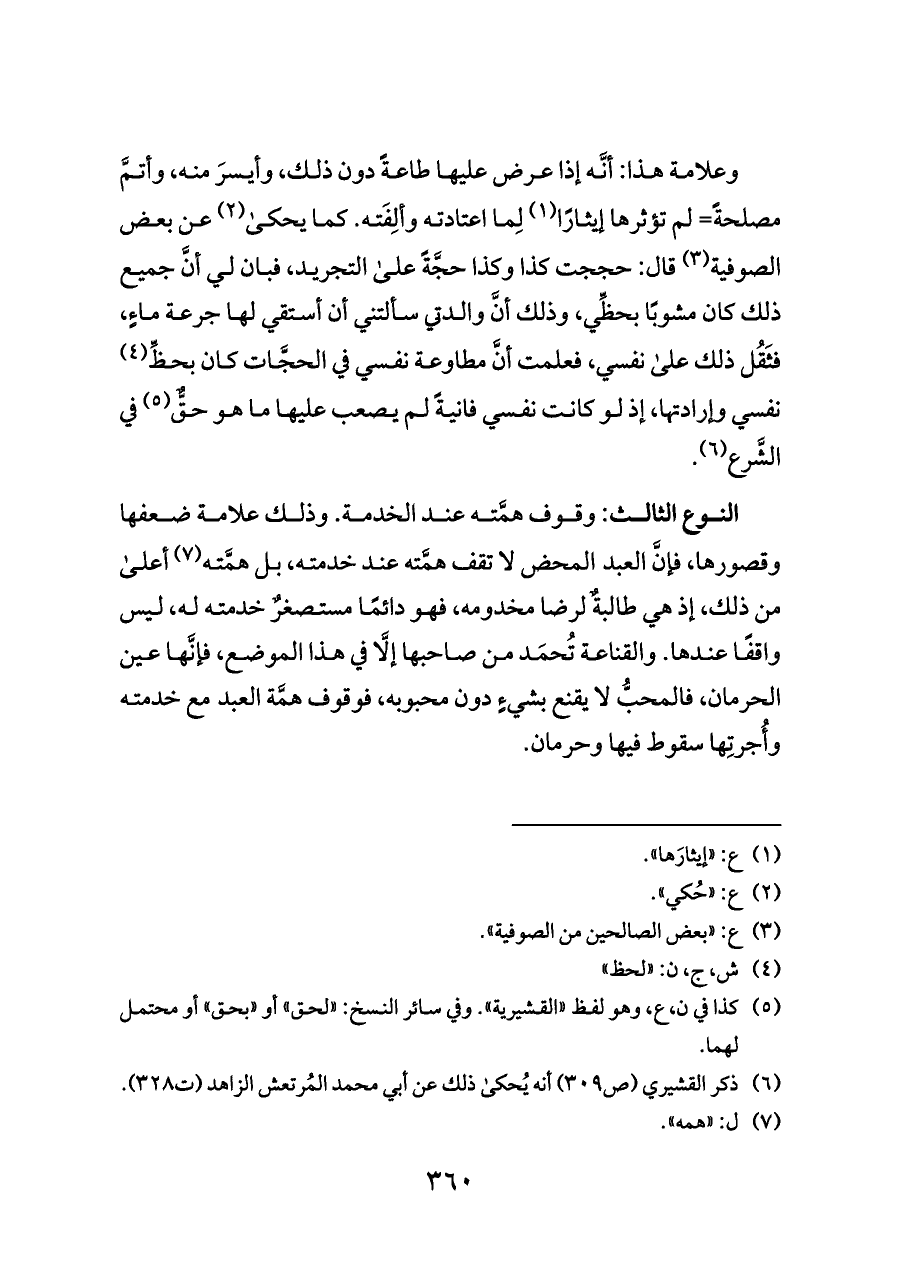 (¬٦) ذكر القشيري (ص ٣٠٩) أنه يُحكى ذلك عن أبي محمد المُرتعش الزاهد (ت ٣٢٨).