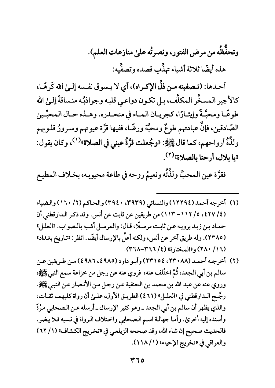 وتحفُّظُه من مرض الفتور، ونصرتُه على منازعات العلم).