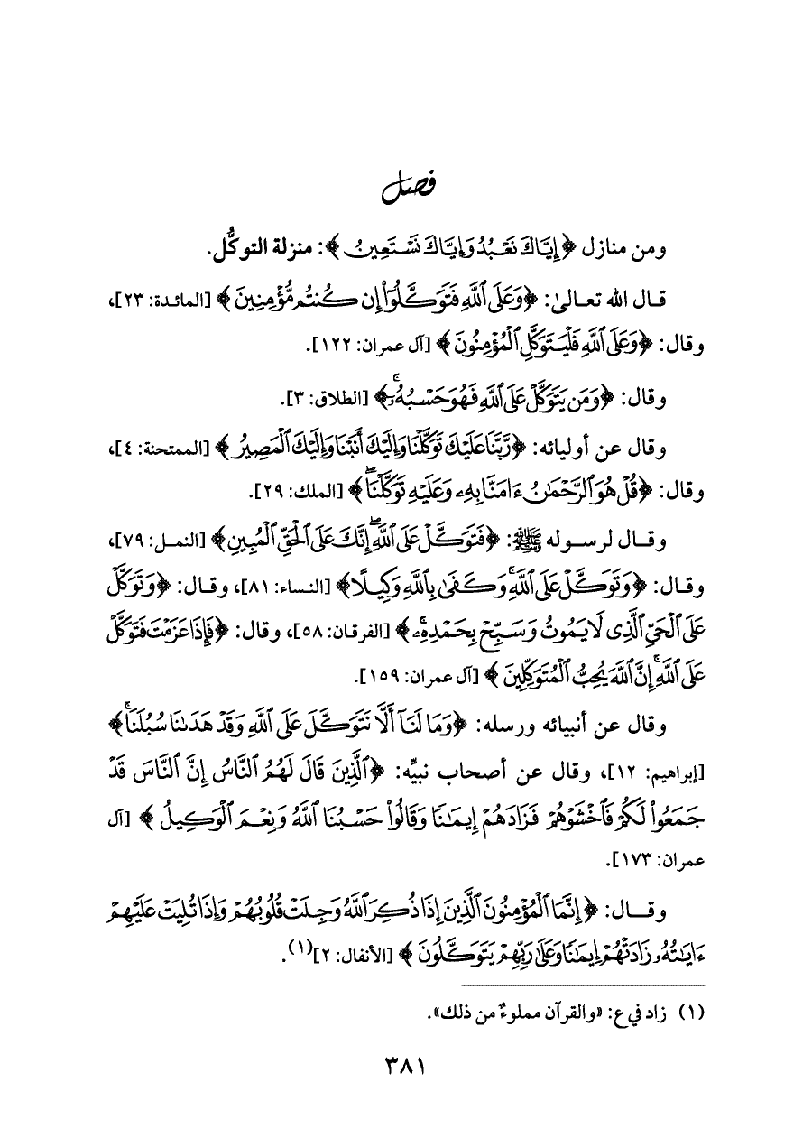 ومن منازل {إِيَّاكَ نَعْبُدُ وَإِيَّاكَ نَسْتَعِينُ}: منزلة التوكُّل.
