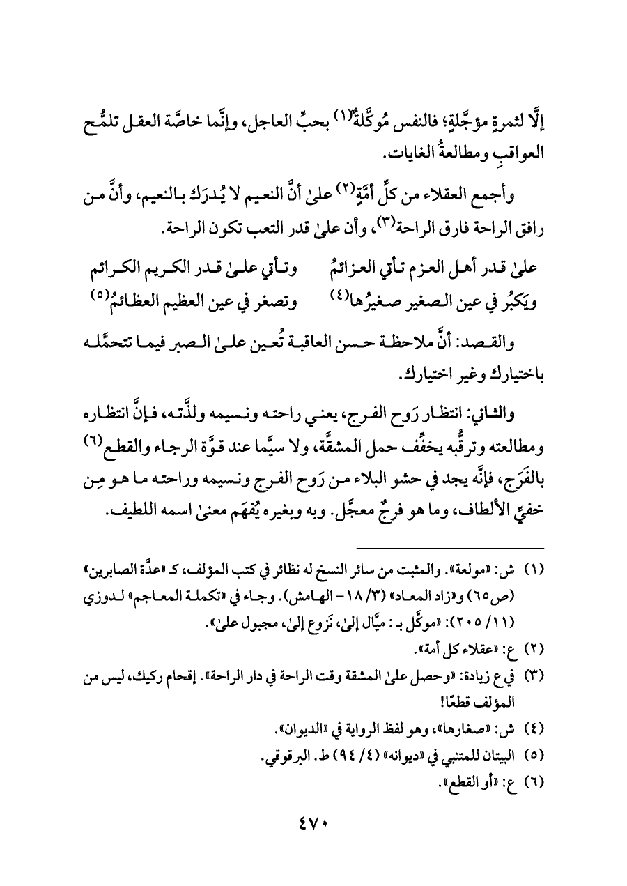 وأجمع العقلاء من كلِّ أمَّةٍ (¬٢) على أنَّ النعيم لا يُدرَك بالنعيم، وأنَّ من رافق الراحة فارق الراحة (¬٣)، وأن على قدر التعب تكون الراحة.