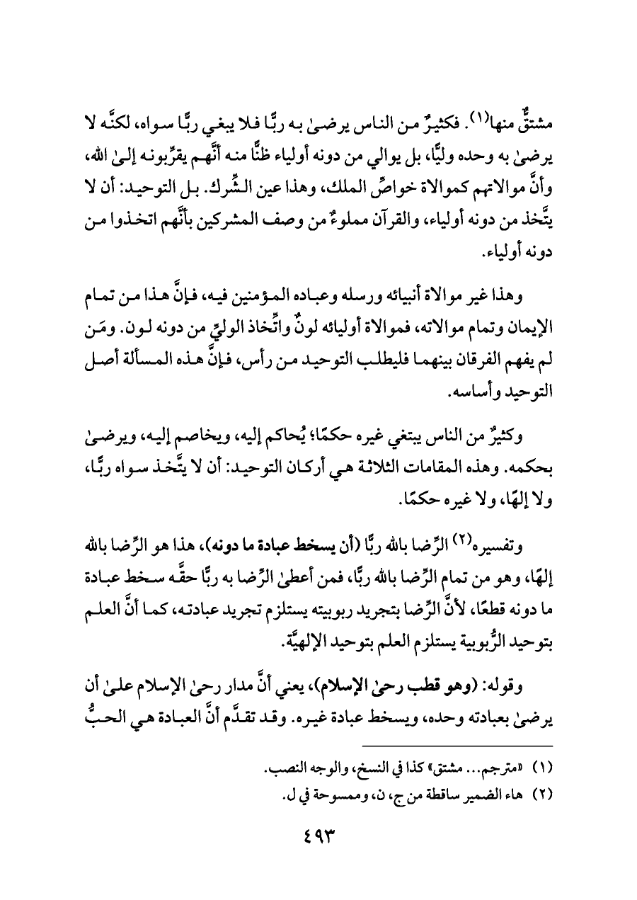 مشتقٌّ منها (¬١). فكثيرٌ من الناس يرضى به ربًّا فلا يبغي ربًّا سواه، لكنَّه لا يرضى به وحده وليًّا، بل يوالي من دونه أولياء ظنًّا منه أنَّهم يقرِّبونه إلى الله، وأنَّ موالاتهم كموالاة خواصِّ الملك، وهذا عين الشِّرك. بل التوحيد: أن لا يتَّخذ من دونه أولياء، والقرآن مملوءٌ من وصف المشركين بأنَّهم اتخذوا من دونه أولياء.