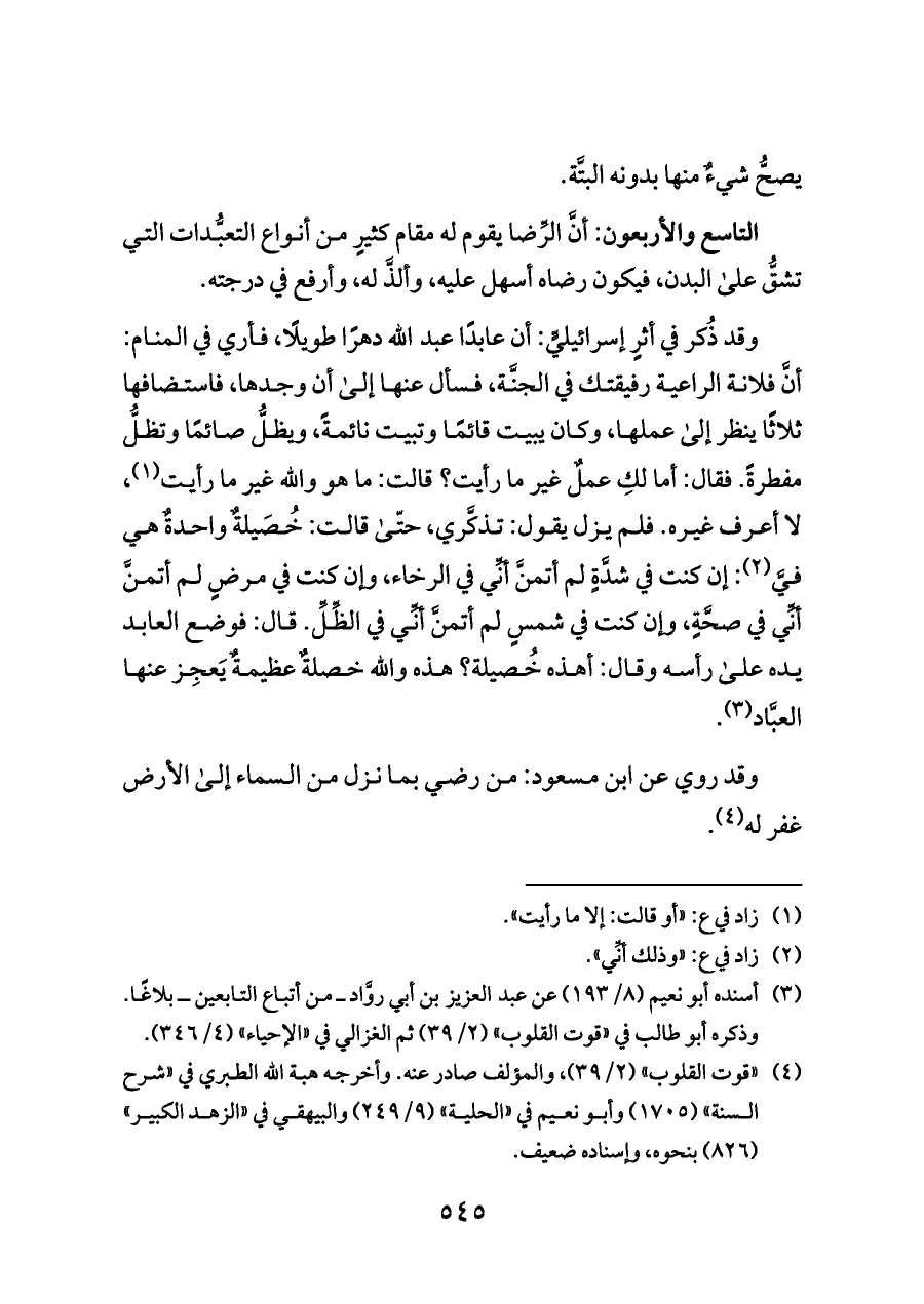 (¬٣) أسنده أبو نعيم (٨/ ١٩٣) عن عبد العزيز بن أبي روَّاد ــ من أتباع التابعين ــ بلاغًا. وذكره أبو طالب في «قوت القلوب» (٢/ ٣٩) ثم الغزالي في «الإحياء» (٤/ ٣٤٦).