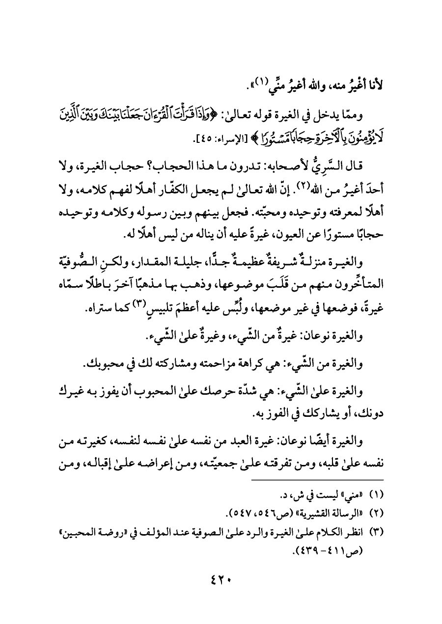 (¬٣) انظر الكلام على الغيرة والرد على الصوفية عند المؤلف في «روضة المحبين» (ص ٤١١ - ٤٣٩).
