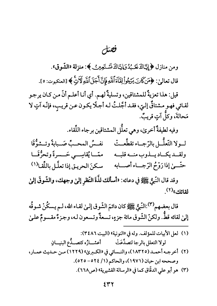 ومن منازل {إِيَّاكَ نَعْبُدُ وَإِيَّاكَ نَسْتَعِينُ}: منزلة «الشّوق».