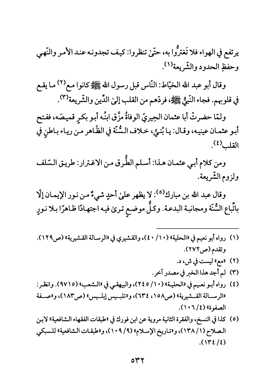 (¬١) رواه أبو نعيم في «الحلية» (١٠/ ٤٠)، والقشيري في «الرسالة القشيرية» (ص ١٢٩). وتقدم (ص ٢٧٢).