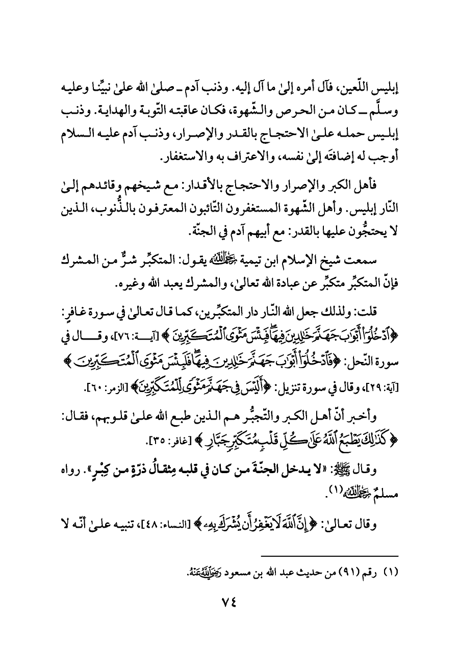 (¬١) رقم (٩١) من حديث عبد الله بن مسعود - رضي الله عنه -.