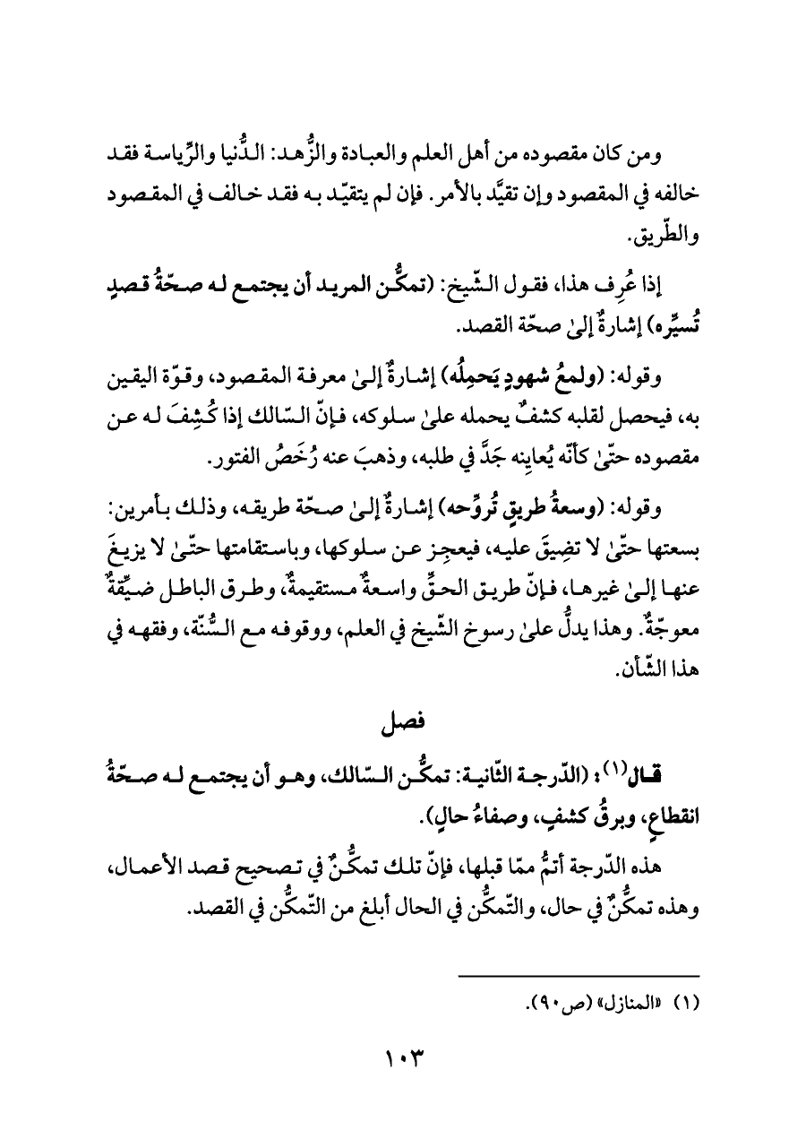 إذا عُرِف هذا، فقول الشّيخ: (تمكُّن المريد أن يجتمع له صحّةُ قصدٍ تُسيِّره) إشارةٌ إلى صحّة القصد.