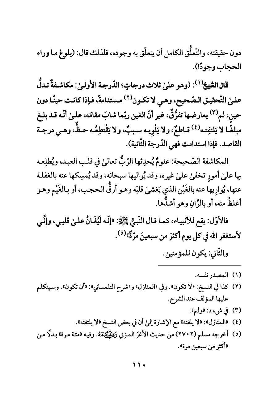 (¬٢) كذا في النسخ: «لا تكون». وفي «المنازل» و «شرح التلمساني»: «أن تكون». وسيتكلم عليها المؤلف عند الشرح.