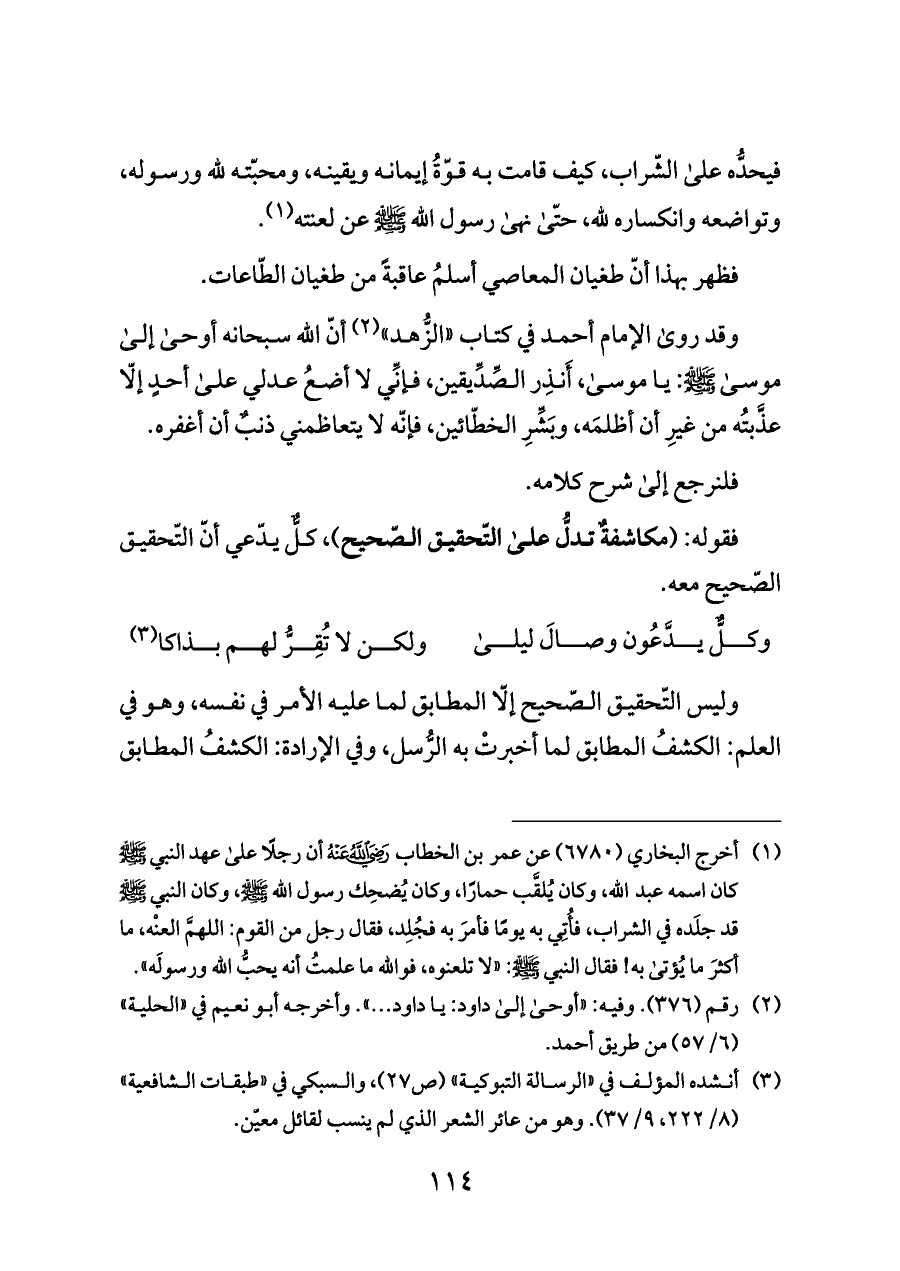 فيحدُّه على الشّراب، كيف قامت به قوّةُ إيمانه ويقينه، ومحبّته لله ورسوله، وتواضعه وانكساره لله، حتّى نهى رسول الله - صلى الله عليه وسلم - عن لعنته (¬١).