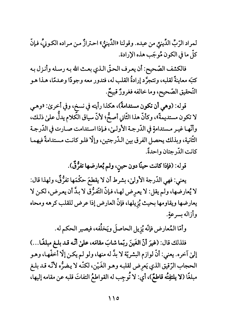 لمراد الرّبِّ الدِّينيِّ من عبده. وقولنا «الدِّينيُّ» احترازٌ من مراده الكونيِّ، فإنّ كلّ ما في الكون مُوجَب هذه الإرادة.