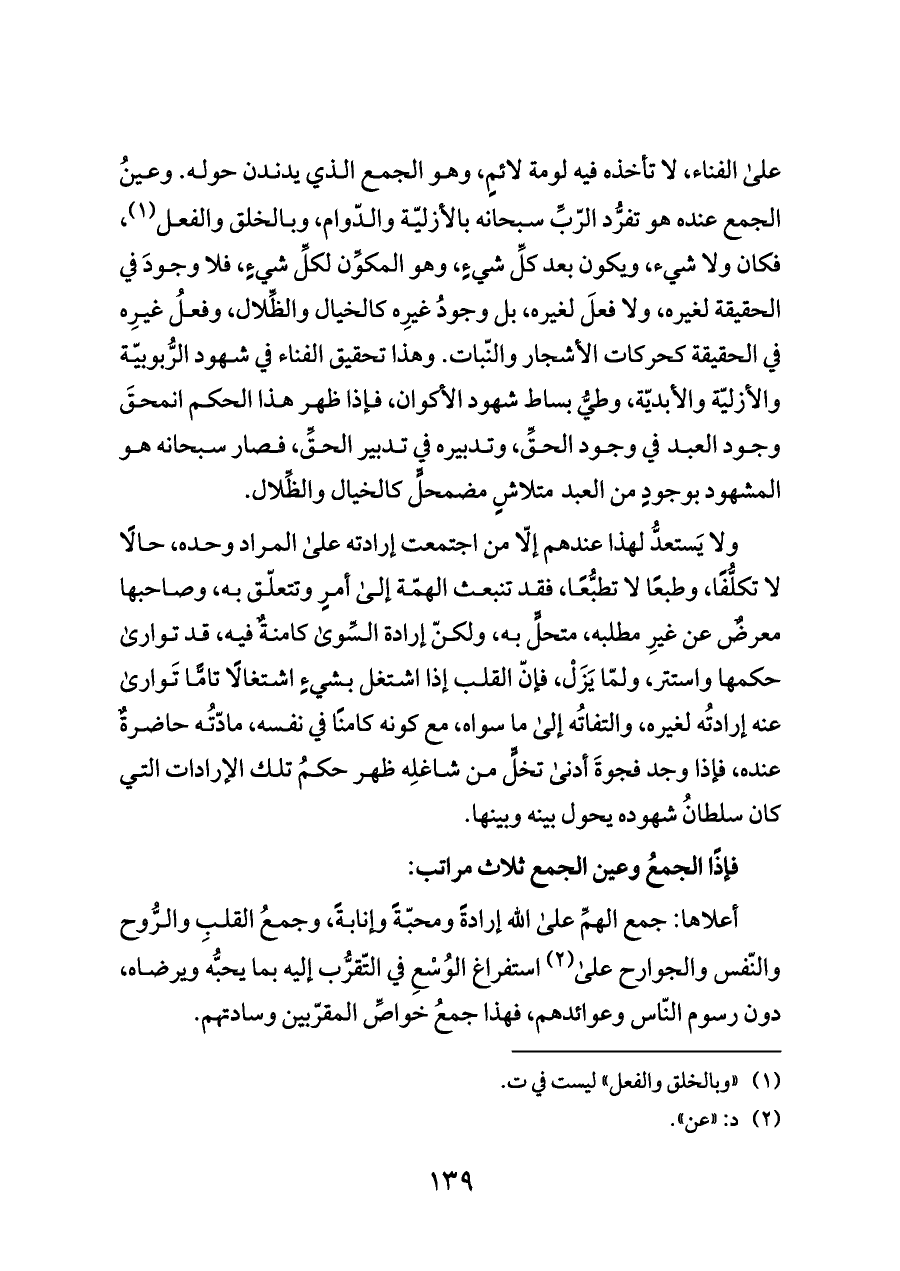 فإذًا الجمعُ وعين الجمع ثلاث مراتب: