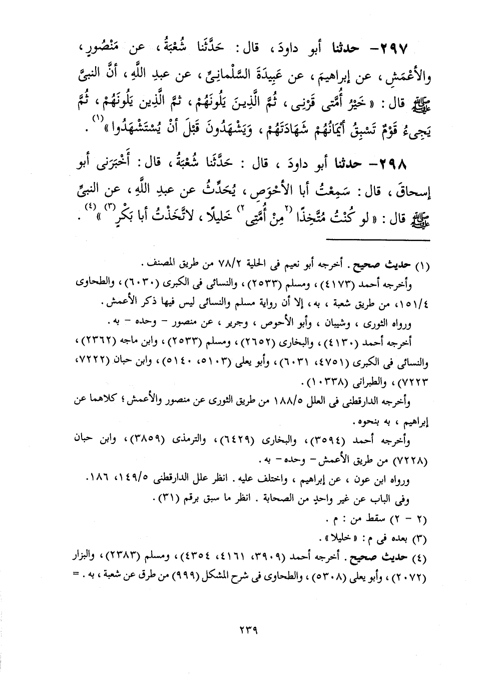 298 - حَدَّثَنَا أَبُو دَاوُدَ قَالَ: حَدَّثَنَا شُعْبَةُ، قَالَ: أَخْبَرَنِي أَبُو إِسْحَاقَ، قَالَ: سَمِعْتُ أَبَا الْأَحْوَصِ، يُحَدِّثُ عَنْ عَبْدِ اللَّهِ، عَنِ النَّبِيِّ صَلَّى اللهُ عَلَيْهِ وَسَلَّمَ قَالَ: «§لَوْ كُنْتُ مُتَّخِذًا مِنْ أُمَّتِي خَلِيلًا لَاتَّخَذْتُ أَبَا بَكْرٍ»