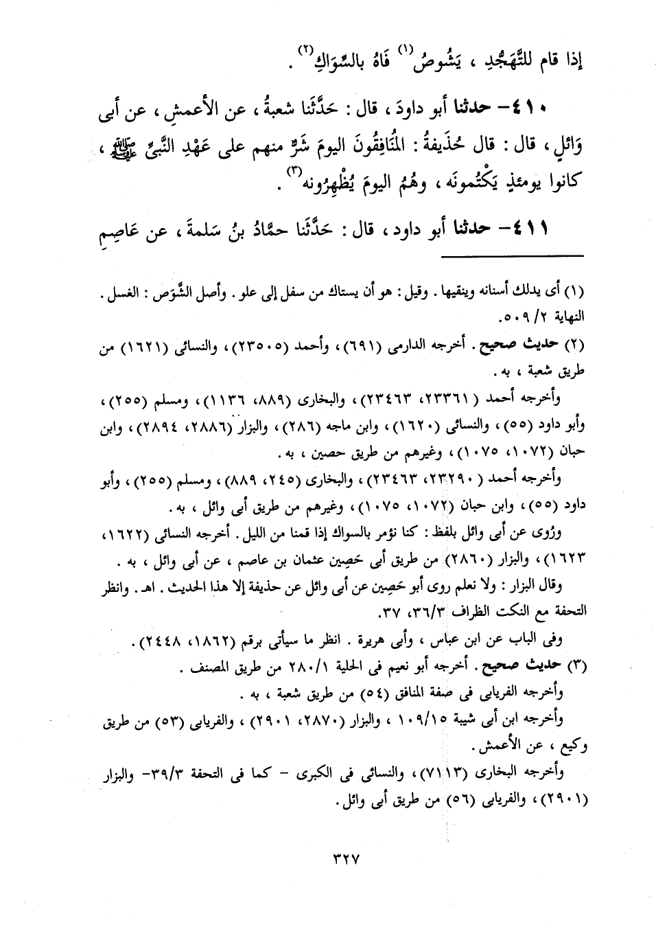410 - حَدَّثَنَا أَبُو دَاوُدَ قَالَ: حَدَّثَنَا شُعْبَةُ، عَنِ الْأَعْمَشِ، عَنْ أَبِي وَائِلٍ، قَالَ حُذَيْفَةُ: «§الْمُنَافِقُونَ الْيَوْمَ شَرٌّ مِنْهُمْ عَلَى عَهْدِ النَّبِيِّ صَلَّى اللهُ عَلَيْهِ وَسَلَّمَ كَانُوا يَوْمَئِذٍ يَكْتُمُونَهُ وَهُمُ الْيَوْمَ يْظهِرُونَهُ»