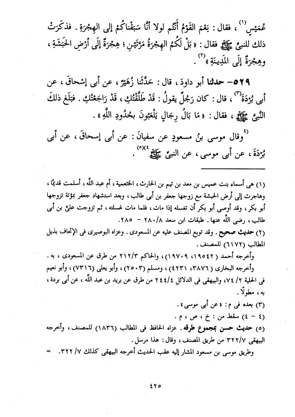 529 - حَدَّثَنَا أَبُو دَاوُدَ قَالَ: حَدَّثَنَا زُهَيْرٌ، عَنْ أَبِي إِسْحَاقَ، عَنْ أَبِي بُرْدَةَ، قَالَ: كَانَ رَجُلٌ يَقُولُ: قَدْ طَلَّقْتُكِ قَدْ رَاجَعْتُكِ، فَبَلَغَ ذَلِكَ النَّبِيُّ صَلَّى اللهُ عَلَيْهِ وَسَلَّمَ فَقَالَ: «§مَا بَالُ رِجَالٍ يَلْعَبُونَ بِحُدُودِ اللَّهِ» وَقَالَ مُوسَى بْنُ مَسْعُودٍ، عَنْ سُفْيَانَ، عَنْ أَبِي إِسْحَاقَ، عَنْ أَبِي بُرْدَةَ، عَنْ أَبِي مُوسَى عَنِ النَّبِيِّ صَلَّى اللهُ عَلَيْهِ وَسَلَّمَ
