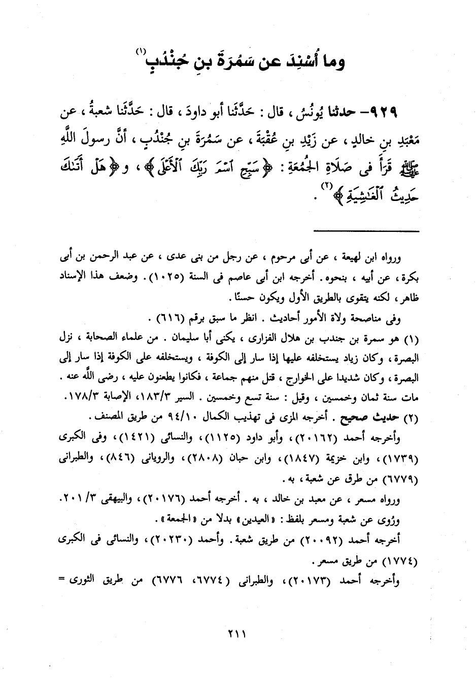 §وَمَا أُسْنِدَ عَنْ سَمُرَةَ بْنِ جُنْدَبٍ