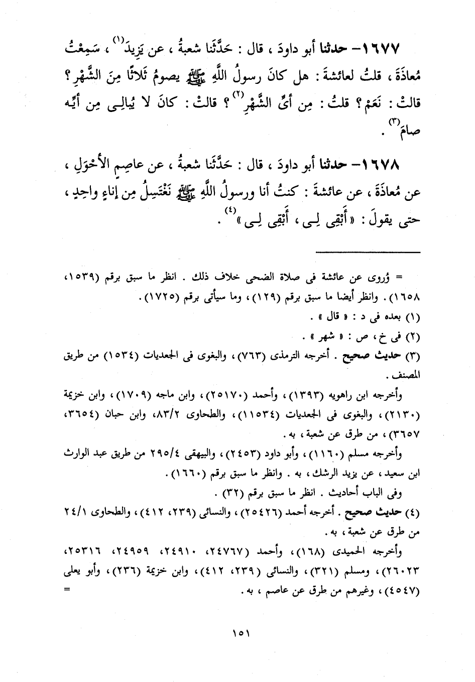 1677 - حَدَّثَنَا أَبُو دَاوُدَ قَالَ: حَدَّثَنَا شُعْبَةُ، عَنْ يَزِيدَ، سَمِعْتُ مُعَاذَةَ، قُلْتُ لِعَائِشَةَ: هَلْ كَانَ رَسُولُ اللَّهِ صَلَّى اللهُ عَلَيْهِ وَسَلَّمَ §يَصُومُ ثَلَاثًا مِنَ الشَّهْرِ؟ قَالَتْ: «نَعَمْ» قُلْتُ: «مِنْ أَيِّ الشَّهْرِ؟» قَالَتْ: «كَانَ لَا يُبَالِي مِنْ أَيِّهِ صَامَ»
